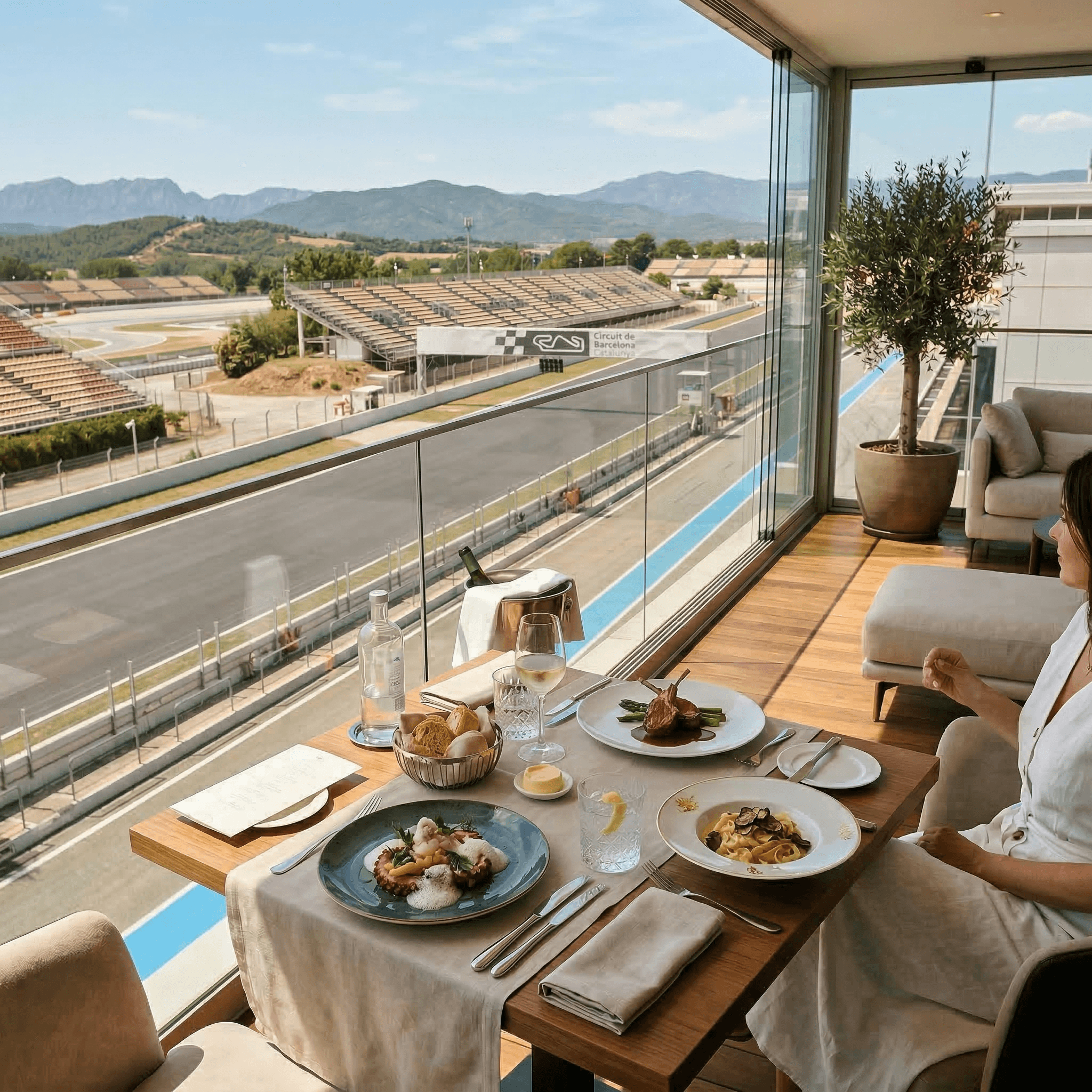 F1 practice session 2 and Rooftop Lounge hospitality.